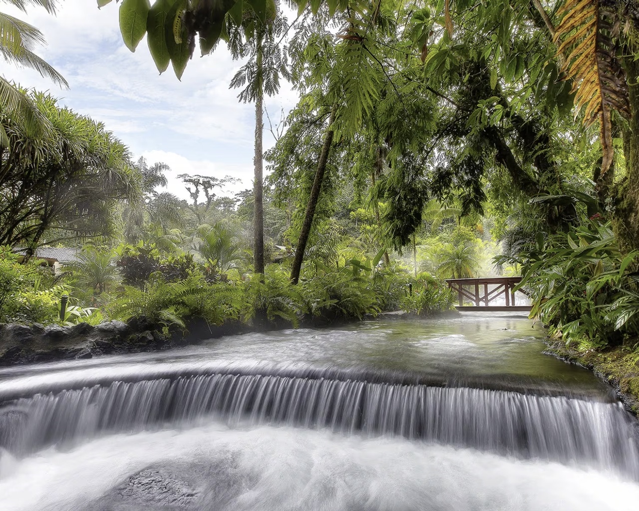 El resort es reconocido por sus aguas termales naturales, que fluyen libremente por la propiedad formando piscinas y cascadas integradas al bosque. Estas aguas, calentadas naturalmente por la actividad volcánica, brindan una experiencia de relajación única tanto de día como de noche.